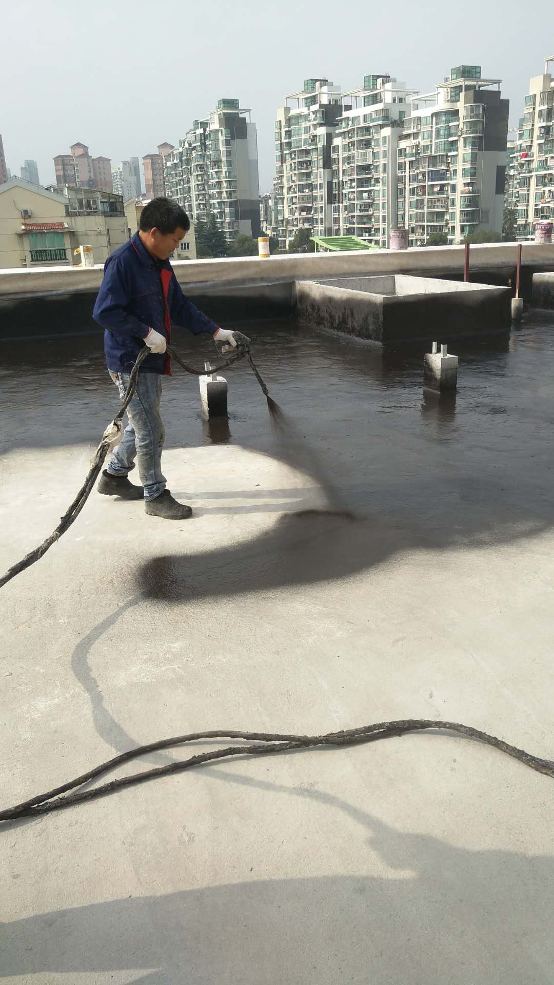 E、在做好防水处理的区域涂一层表层涂料,表层涂料的总涂覆率为35平方米/20升(可以一次涂刷,但建议分两次涂刷,保持总涂覆率不变)。